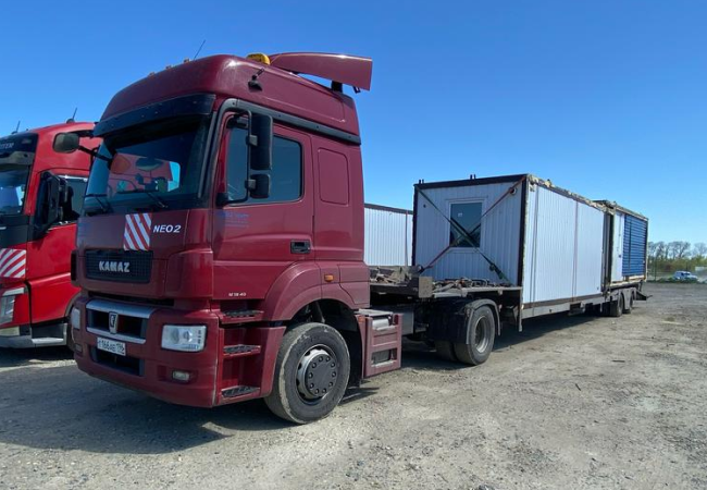 Безопасная и надежная транспортировка строительных бытовок с помощью тралов – низкорамных платформ для негабаритных грузов